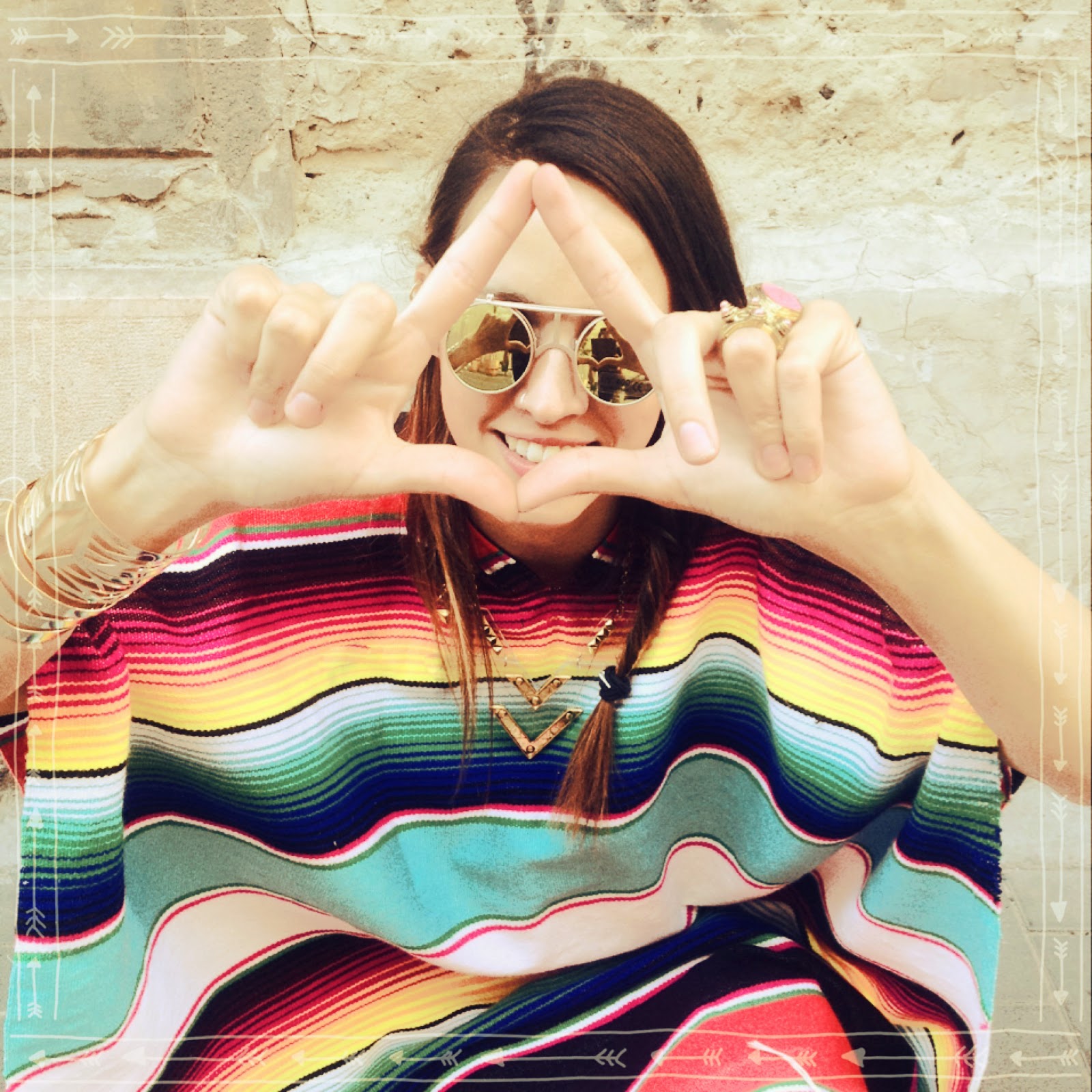 Become a mexican your way! Your rainbow poncho will light the way, especially if you add some golden bijous and colorful shades.